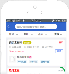 海量工作機會等著您,同一時刻您將面對數(shù)以十萬的工作機會;幫助您記憶最近搜索條件,簡化您的搜索操作。